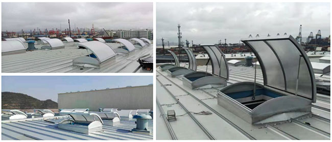圓拱形的設(shè)計,外觀美觀大氣,能更好的防水,同時有效減少風(fēng)壓阻力,天窗頂部為采光板,有效增加室內(nèi)亮度,開啟電機設(shè)計成24V電壓,可連接消防聯(lián)動控制系統(tǒng)及風(fēng)、雨、煙感應(yīng)器。***開啟角度為45°。