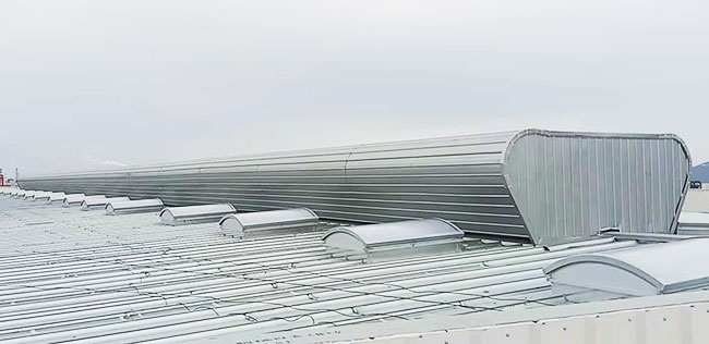 屋脊通風器也稱為通風氣樓,是鋼結構廠房屋頂通風器的一種常用類型,其外形優美、圓潤、技術含量高、通風量大、風阻力小、性價比高、而且還可以通過閥板的啟閉來控制溫度和排氣量,適用性非常強,幾乎可用于任何需要通風的工業廠房車間。